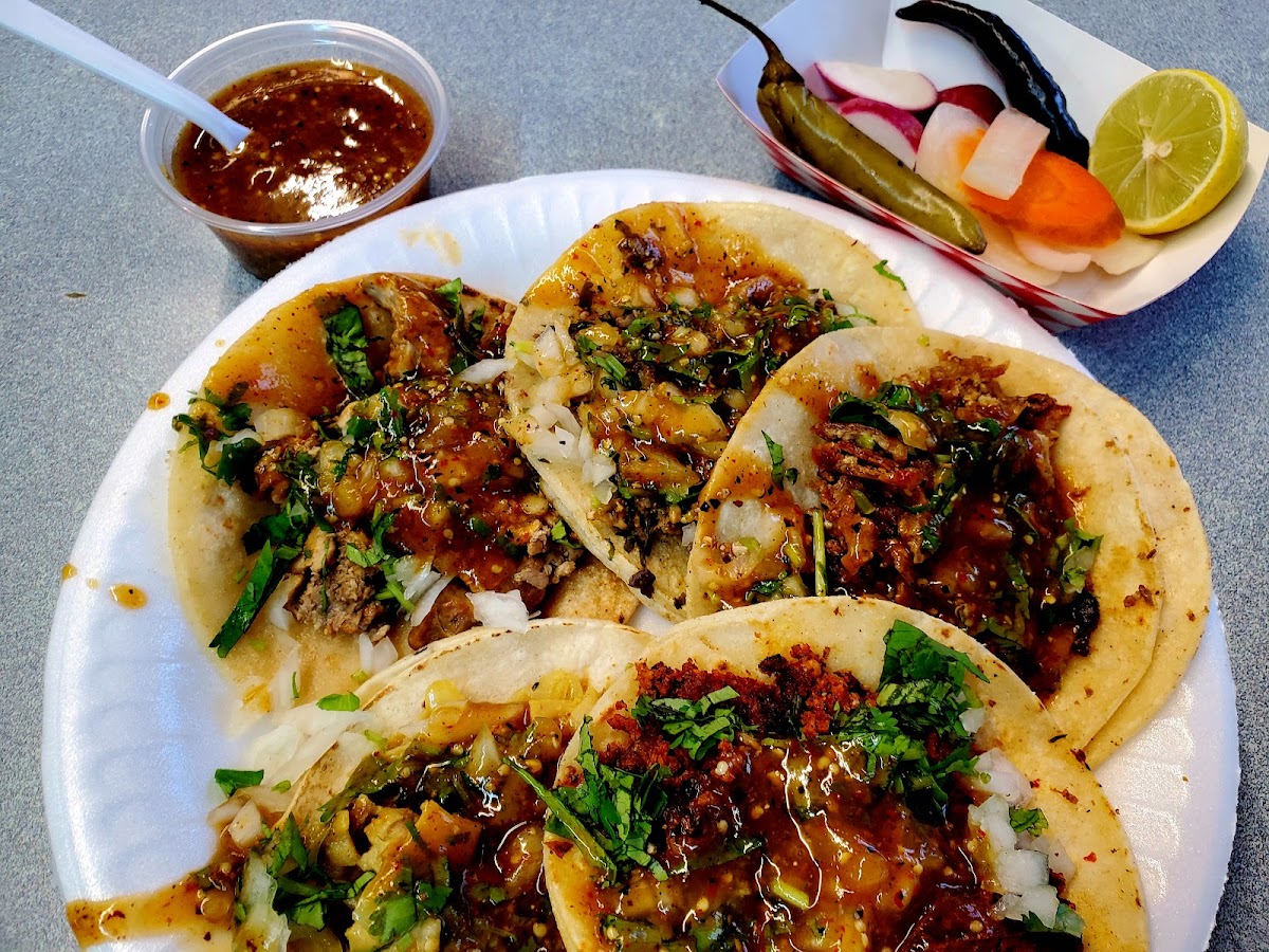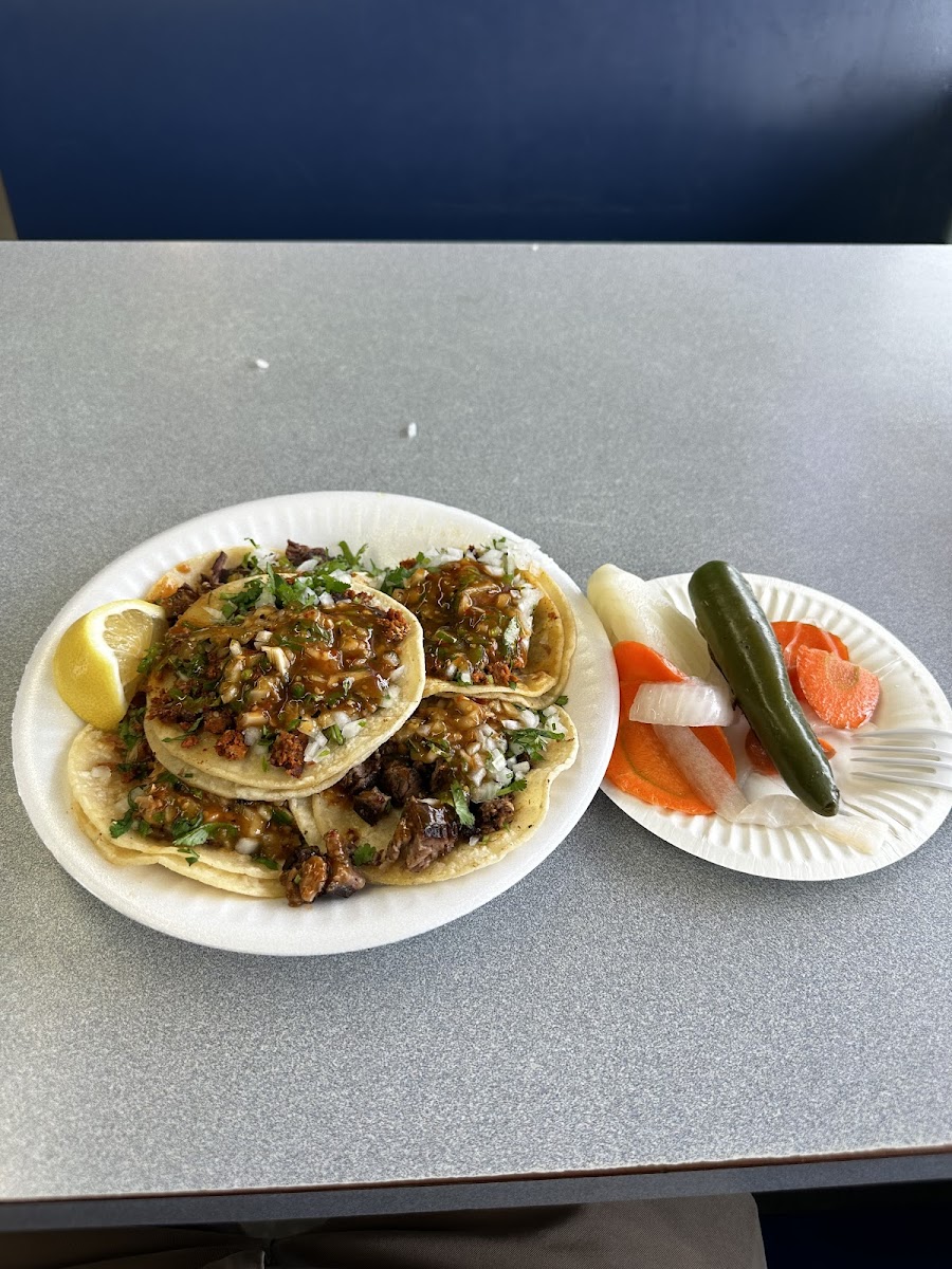 Amazing tacos, best cabeza and tripas tacos. The salsa is always so good, not too spicy. Friendly service, quick service. I wish they would put some tables outside to enjoy the sun.