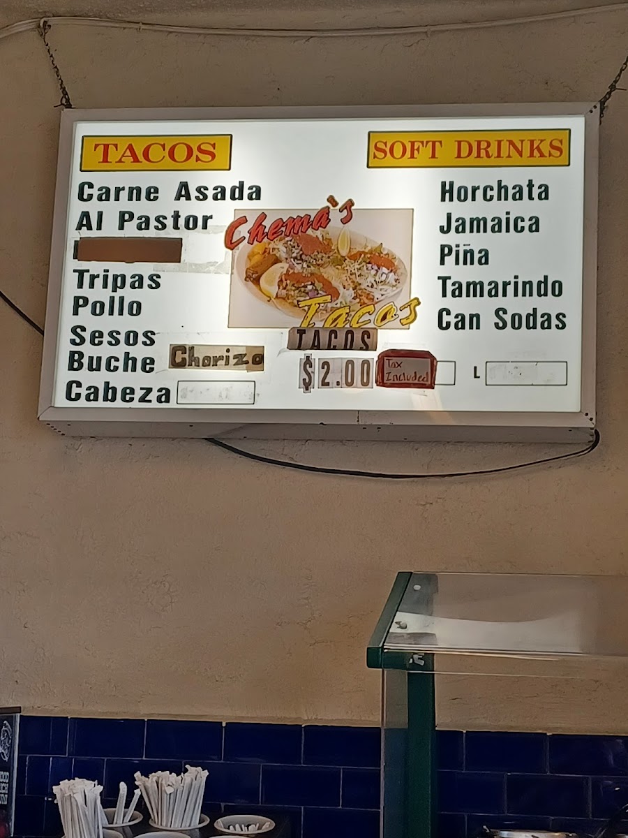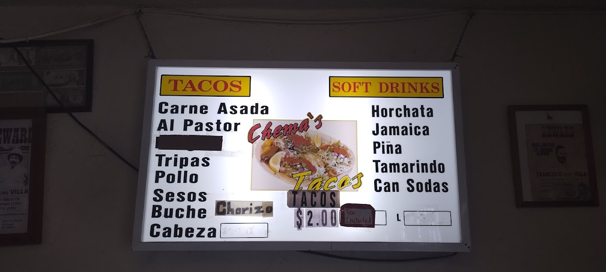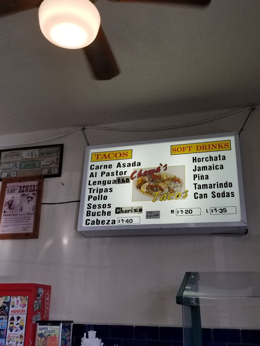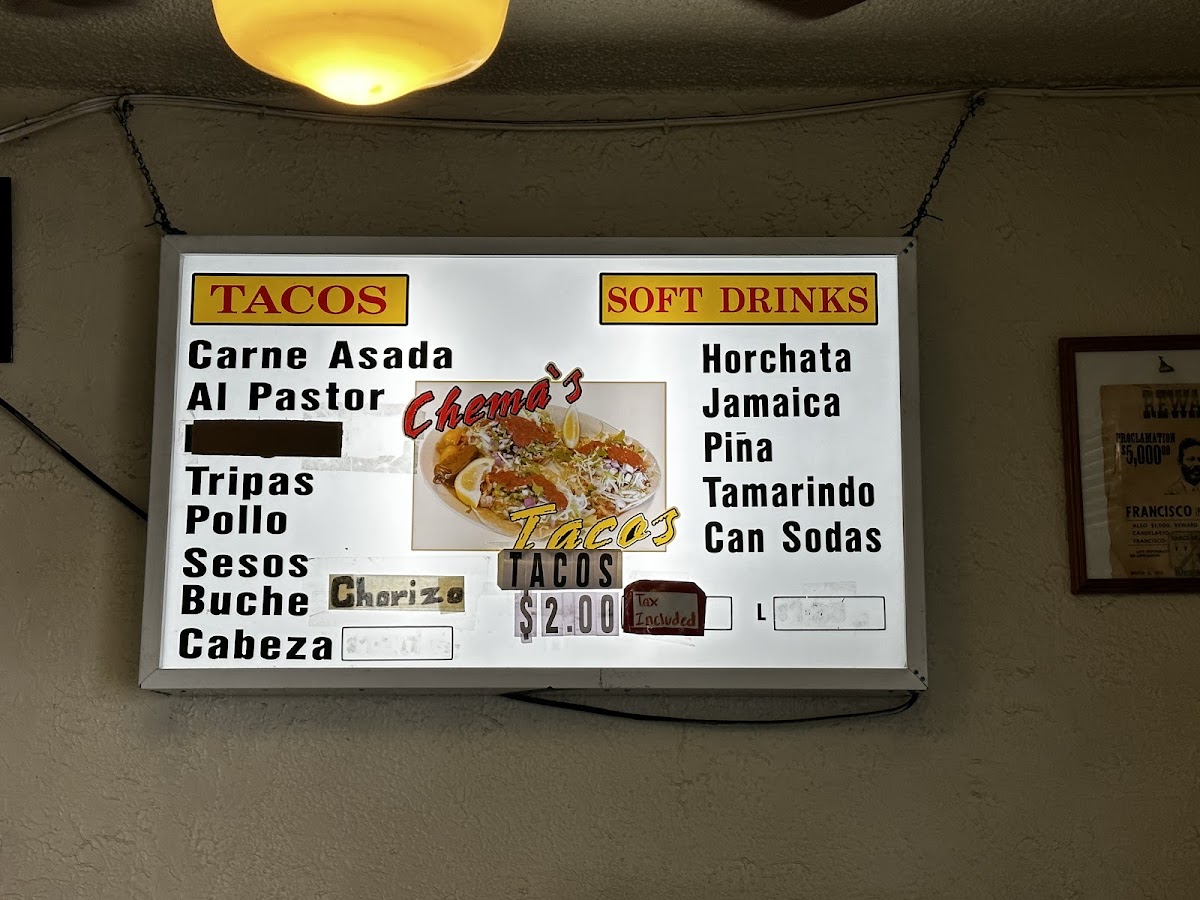 Chema's Tacos Menu